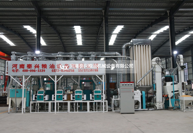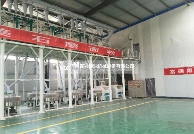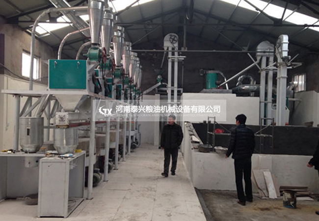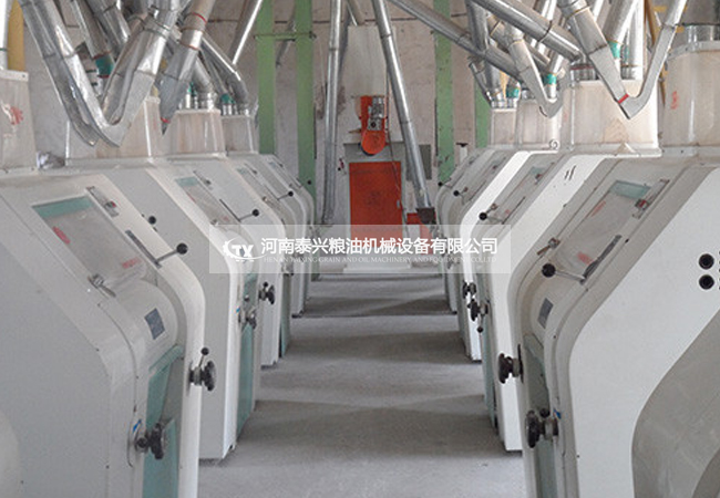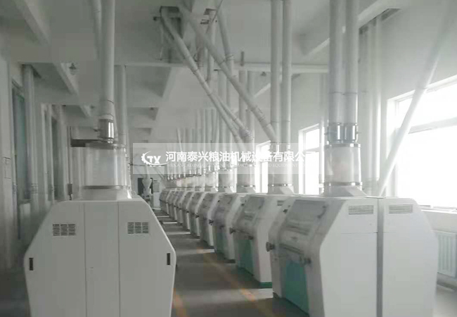 河南泰興面粉機(jī)械從原糧清理、去石、多級(jí)除雜、拋光、到磨粉裝袋、配電都全部實(shí)現(xiàn)自動(dòng)化連續(xù)作業(yè),工藝流暢,操作維修方便。